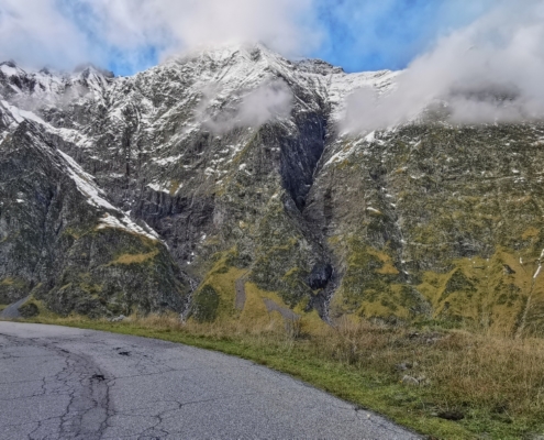 Bisher kannte ich so etwas wie Höhenangst nicht und ich werde auch jetzt nicht panisch, wenn ich in großer Höhe stehe, aber eine extrem enge Straße, die auf der Abhangseite (sehr steil) nicht gesichert, war mir dann doch zu gefährlich. Mir war einfach so mulmig, dass ich mich nicht weitergetraut habe, zumal ich Angst hatte, dass es beim Bergabfahren schon finster werden könnte.