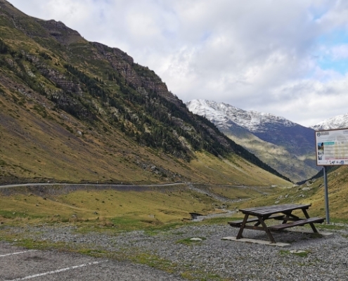 Eigentlich stand dieser Pass nur an zweiter Stelle meiner Wunschziele. eigentlich wollte ich zum Fahrrad-Mekka, zum Col de Tourmalet. dieser liegt jedoch soweit in Frankreich, dass ich eine dreieinhalb-stündige Fahrt einfach vor mir hatte. Das war mir dann doch zu viel, zumal ich die ersten 100 km schon einmal gefahren bin (am Samstag).